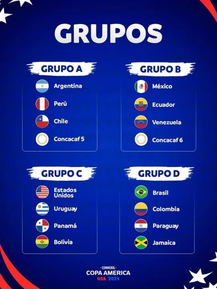 Los grupos de la Copa América 2024 presentan además otras selecciones de gran renombre. El Grupo B está conformado por México, Colombia, Venezuela y Jamaica. Por su parte, el Grupo C cuenta con Estados Unidos, Uruguay, Panamá y Bolivia. Finalmente, el Grupo D está compuesto por Brasil, Colombia, Paraguay y Honduras o Costa Rica.