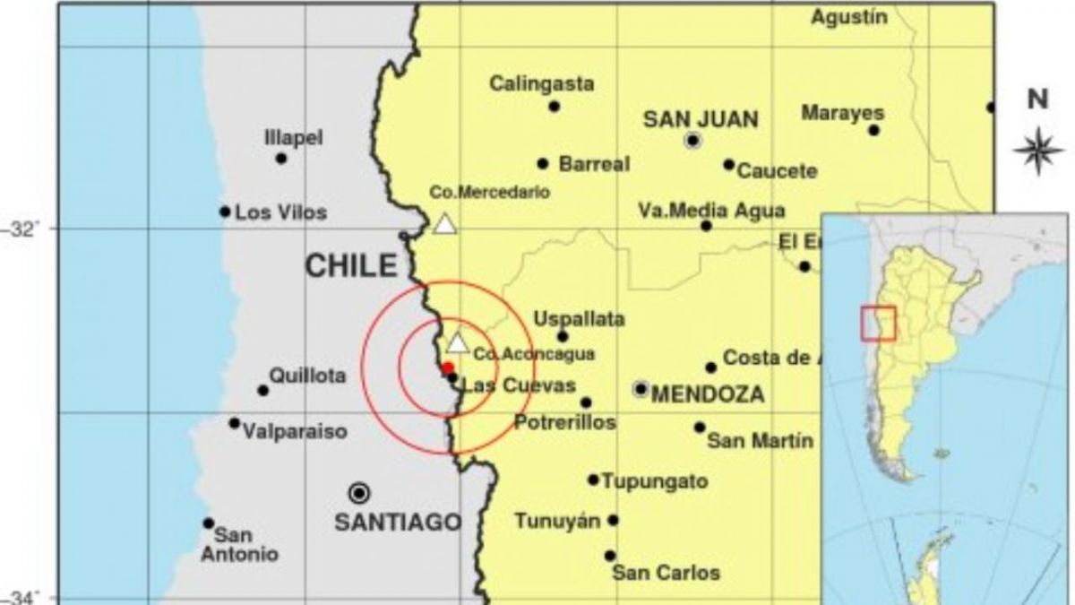 El temblor, de 5,8 grados en la escala Richter, se registró esta madrugada en la provincia de Mendoza y se sintió en Chile, reportaron el Instituto Nacional de Prevención Sísmica (Inpres) y la Oficina Nacional de Emergencia del Ministerio del Interior y Seguridad Pública del país vecino (Onemi).