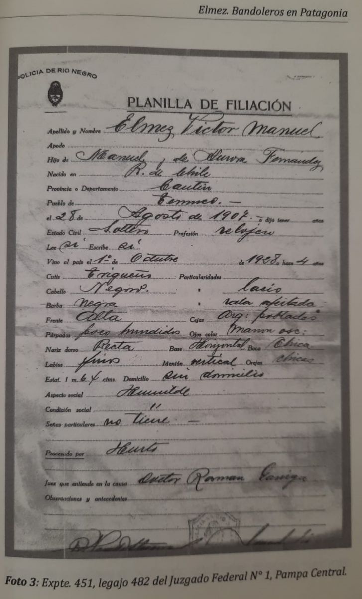 Víctor Manuel Elmez se llamaba. Había nacido en la región de la Araucanía por el 1907 pero algunos “problemas” con los Carabineros lo obligaron a cruzar la cordillera. Tenía 21 años; confiaba en sus habilidades y había incorporado algunos mitos que movilizaban a los migrantes. El principal: en la Patagonia se puede hacer fortuna. No resultó de esa forma: en poco tiempo protagonizó un raid de asaltos y fugas junto al famoso Juan Bautista Vairoleto; pasó años en prisión y terminó a los tiros, en un meando oscuro del río Negro. Más culto que el promedio de los colonos, más astuto que otros, llegó a liderar su propia banda y a generar una leyenda en el Alto Valle de los años ’30. Tuvo su final de leyenda: con un arma en la mano, intentando escapar de la policía, a metros nomás de concretar un nuevo escape.