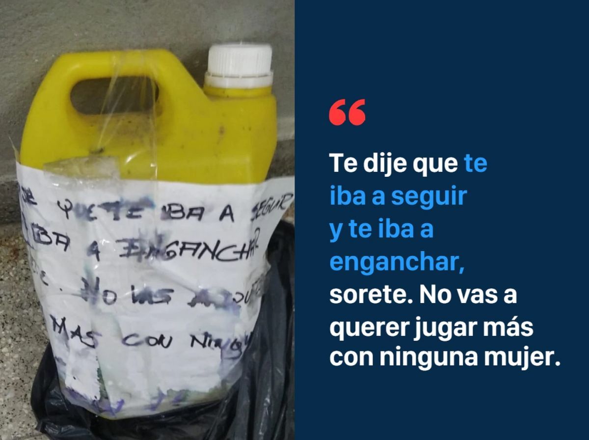 El papel llevaba un mensaje: “Te dije que te iba a seguir y te iba a enganchar, sorete. No vas a querer jugar más con ninguna mujer”.
