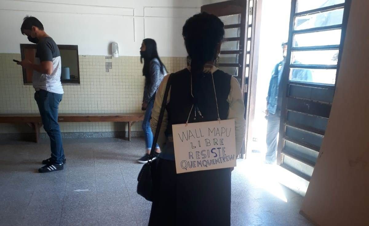 Hermelinda es el nombre de la mujer que se hizo presente en la escuela 21 del barrio Villa Lynch con un cartel que en el frente decía “Yo si te creo Victoria” y en su espalda otro que decía “libertad al pueblo Mapuche, resiste Quemquemtreu”.