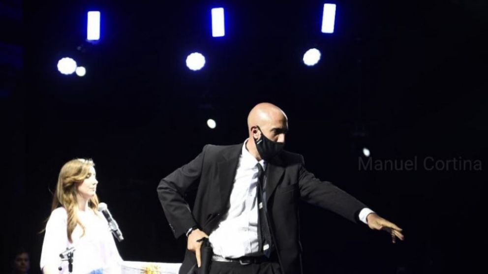 Un momento de tensión se vivió este domingo en el bunker de JAvier Milei cuando un custodio de seguridad amagó a sacar su arma al ver que una persona del público intentaba subirse al escenario. La persona en cuestión había sido victima de un robo y tenía la intención de avisarlo.