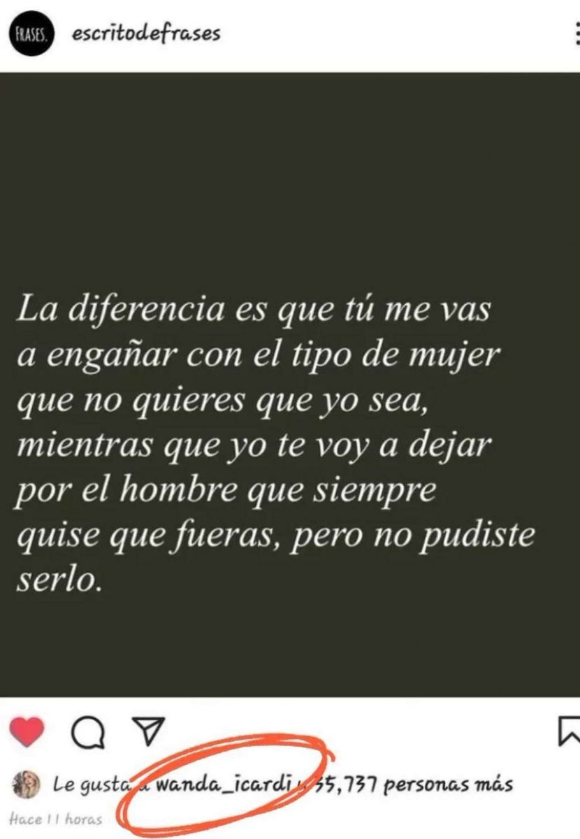 En las últimas horas, Wanda Nara mirando posteos en las redes, le dio “like” a una frase de una página. Esto deja al descubierto que la rubia podría pagarle con la misma moneda a Mauro Icardi, que la engañó con la China Suárez en París.