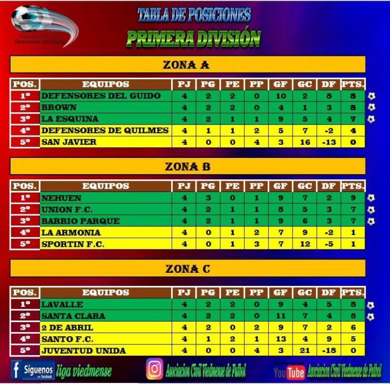 Así las cosas, los clasificados para los cuartos en Primera son: Guido, Brown, La Esquina, Nehuén, Unión, Barrio Parque, Lavalle y Santa Clara.