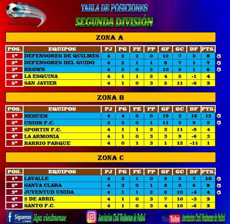 En Segunda, avanzaron Quilmes, Guido, Brown, Nehuén, Unión, Lavalle, Santa Clara y Juventud Unida.