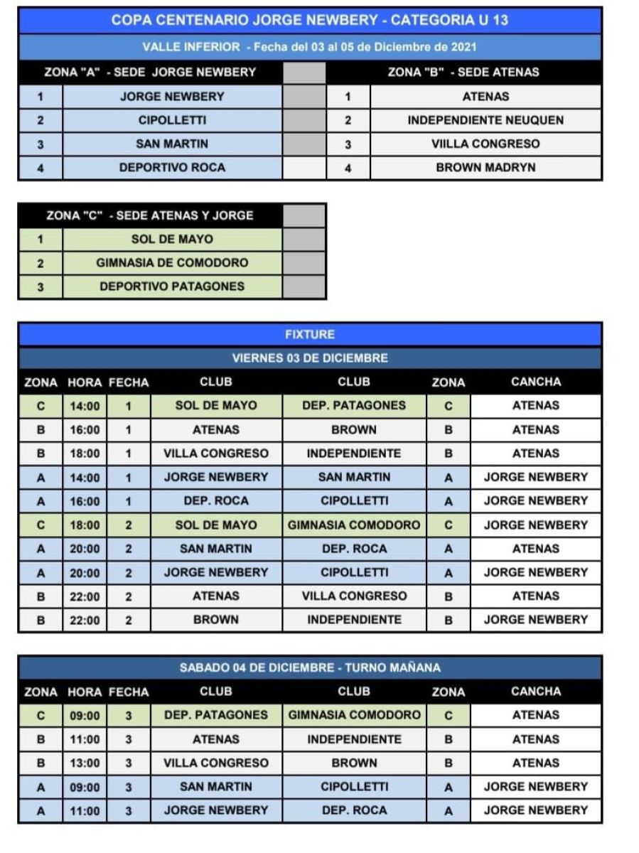 El Grupo A estará integrado por Cipolletti, San Martín, Deportivo Roca y el anfitrión Newbery. En el Grupo B se medirán Atenas, Independiente de Neuquén, Villa Congreso y Brown de Puerto Madryn.