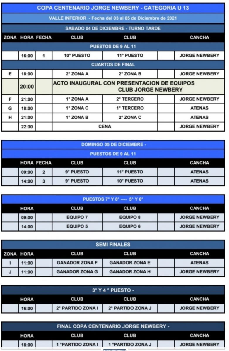 EL FIXTURE DE LA COPA CENTENARIO U13: