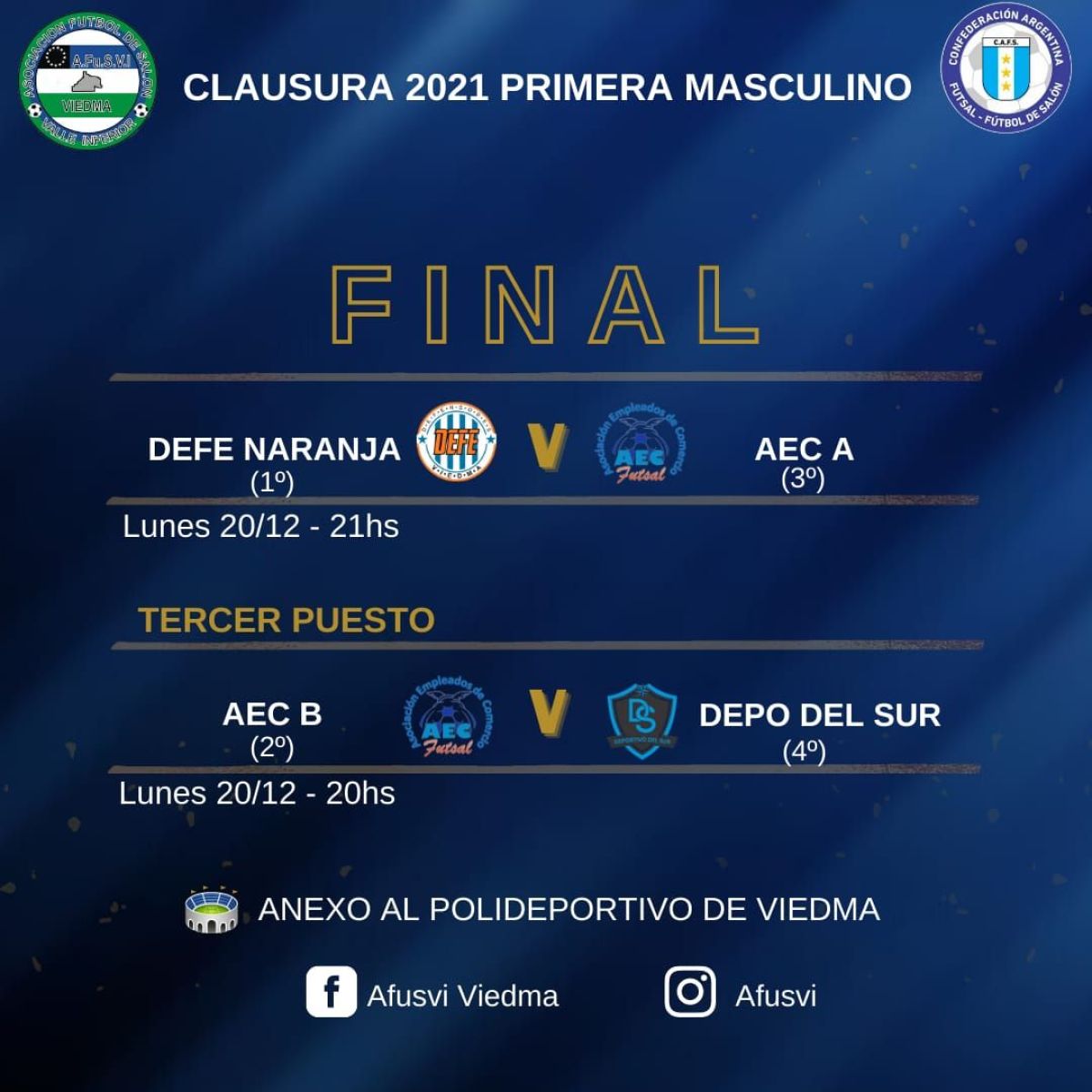 Por otro lado, el Clausura 2021 que organiza la Asociación de Fútbol de Salón del Valle Inferior tendrá su último capítulo el lunes en el Anexo. Defensores de Viedma Naranja y Empleados de Comercio A saldrán a escena desde las 21.