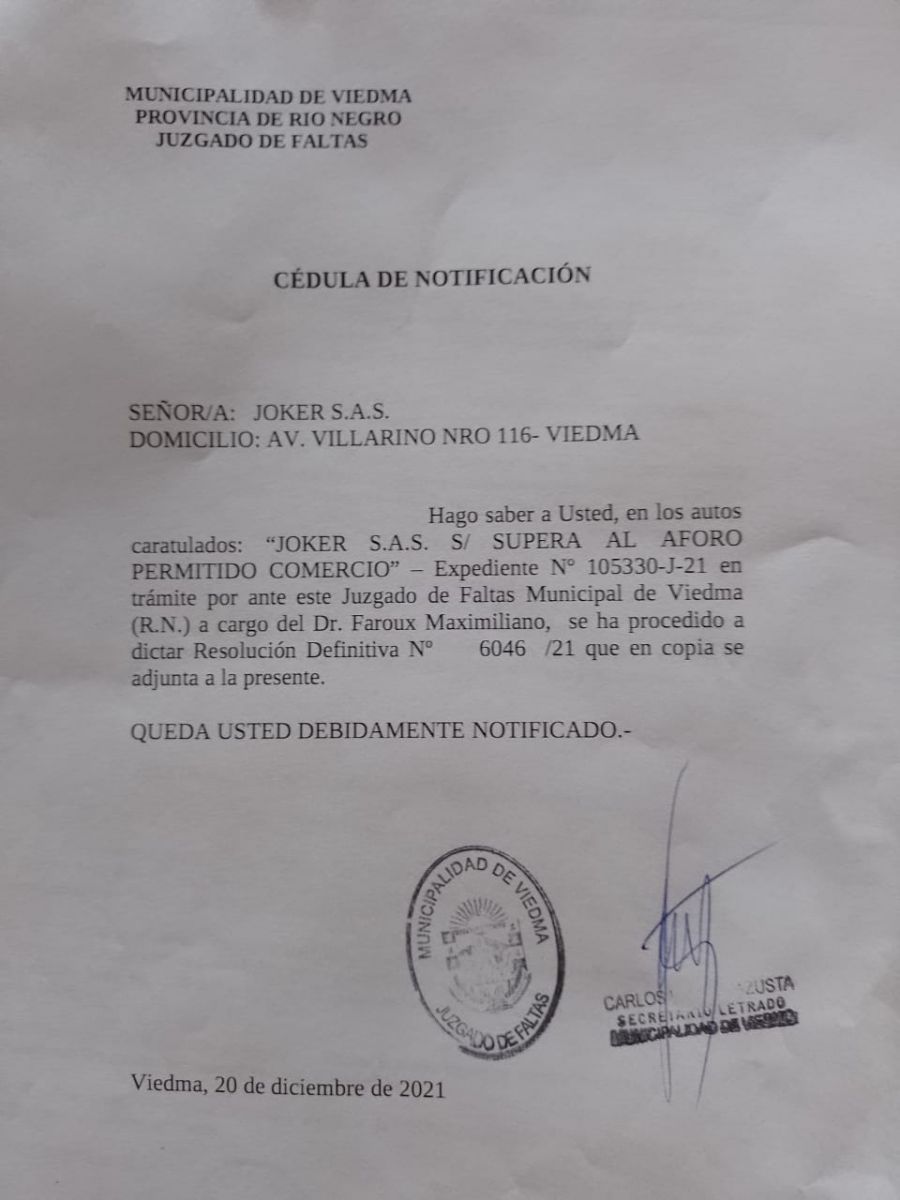 Durante la jornada de este martes 21, inspectores municipales llegaron a Joker, uno de los recintos nocturnos más convocantes de Viedma, y le pusieron la faja de clausura. Se vivió un momento de incertidumbre y de asombro por parte de la gente que trabaja en el lugar.