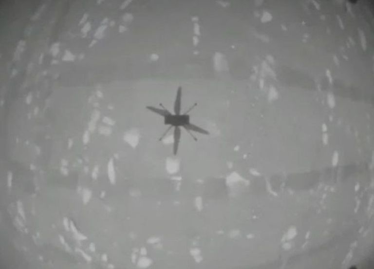 El diminuto aparato despegó del suelo y flotó en el aire a unos tres metros durante unos 20 a 30 segundos antes de descender y volver a tocar la superficie marciana. Para ello, utiliza dos rotores que giran en direcciones opuestas para levantar el dron del suelo.