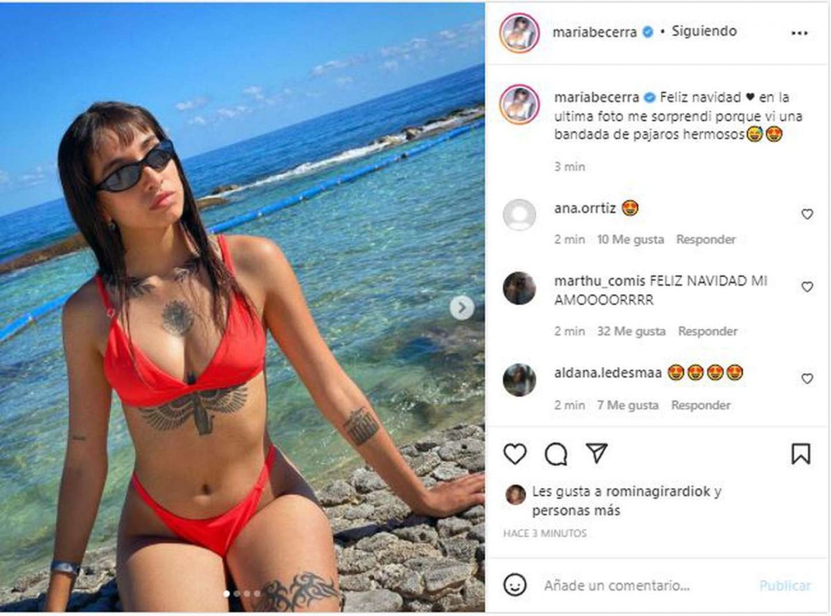Ya en el lugar, María compartió una serie de historias junto a su hermana Ailín, desde el hotel y desde la playa. También hizo un posteo con fotos en el lugar, deseando una feliz Navidad a su más de siete millones de seguidores.