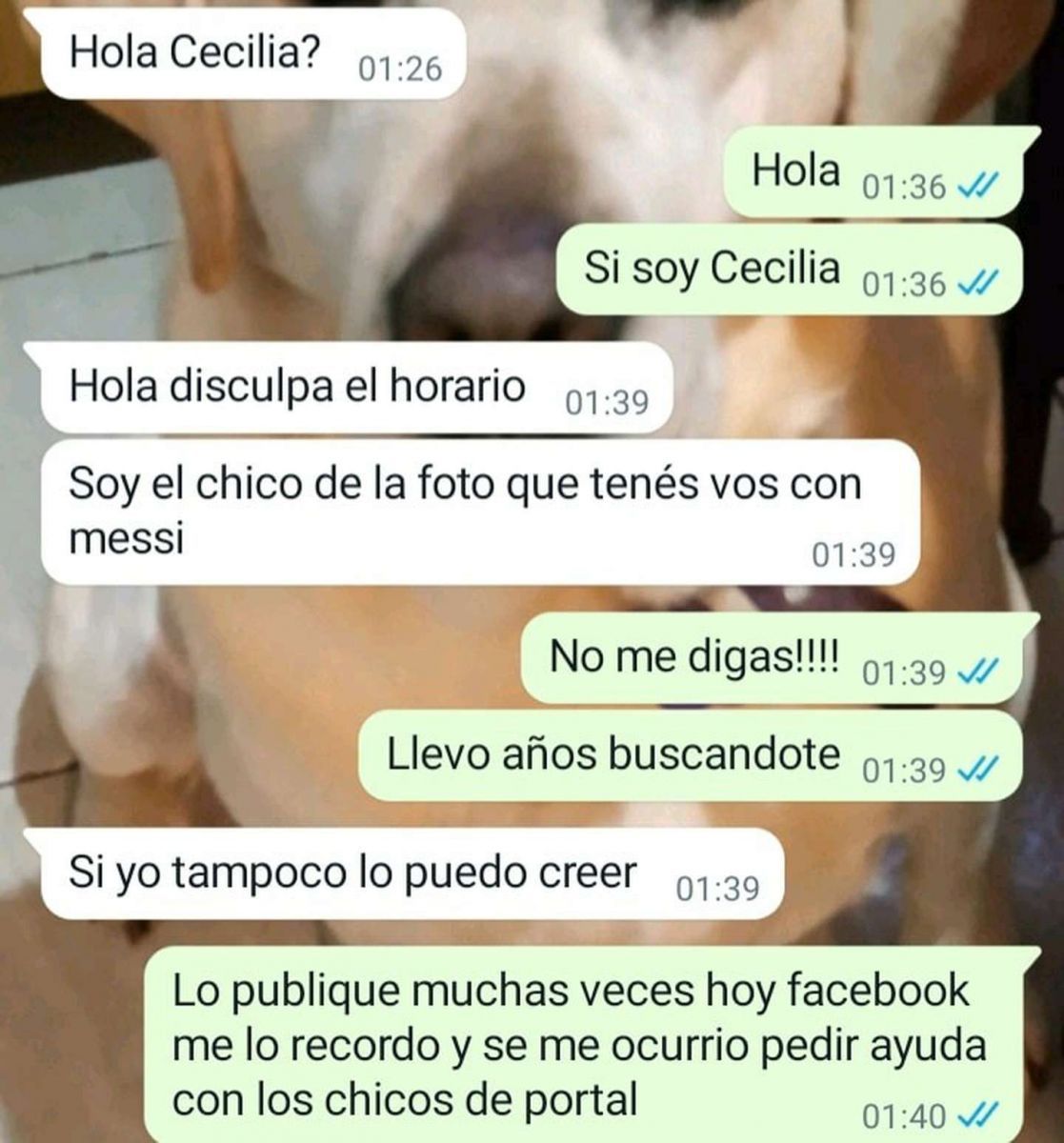 -¡Casi me muero! Le contesté enseguida: “Llevo años buscándote”, le puse y ahí desperté a mis chicos, les conté que lo había encontrado, estaba re emocionada. Al rato el chico publicó la conversación que tuvimos y la historia se viralizó.
