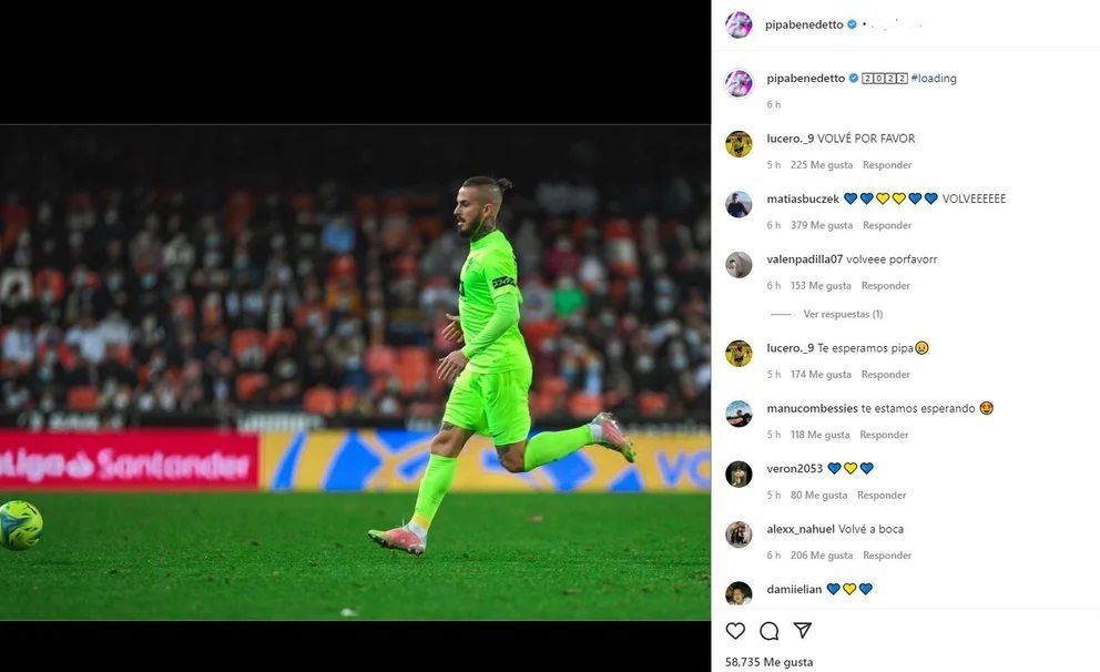 “2022. Loading (cargando)”, escribió el delantero de 31 años junto con una foto en su equipo actual, el Elche de España, aunque su pase le pertenece al Olympique de Marsella. Por supuesto, todos los simpatizantes se volcaron a su cuenta y pidieron por su retorno a Boca.