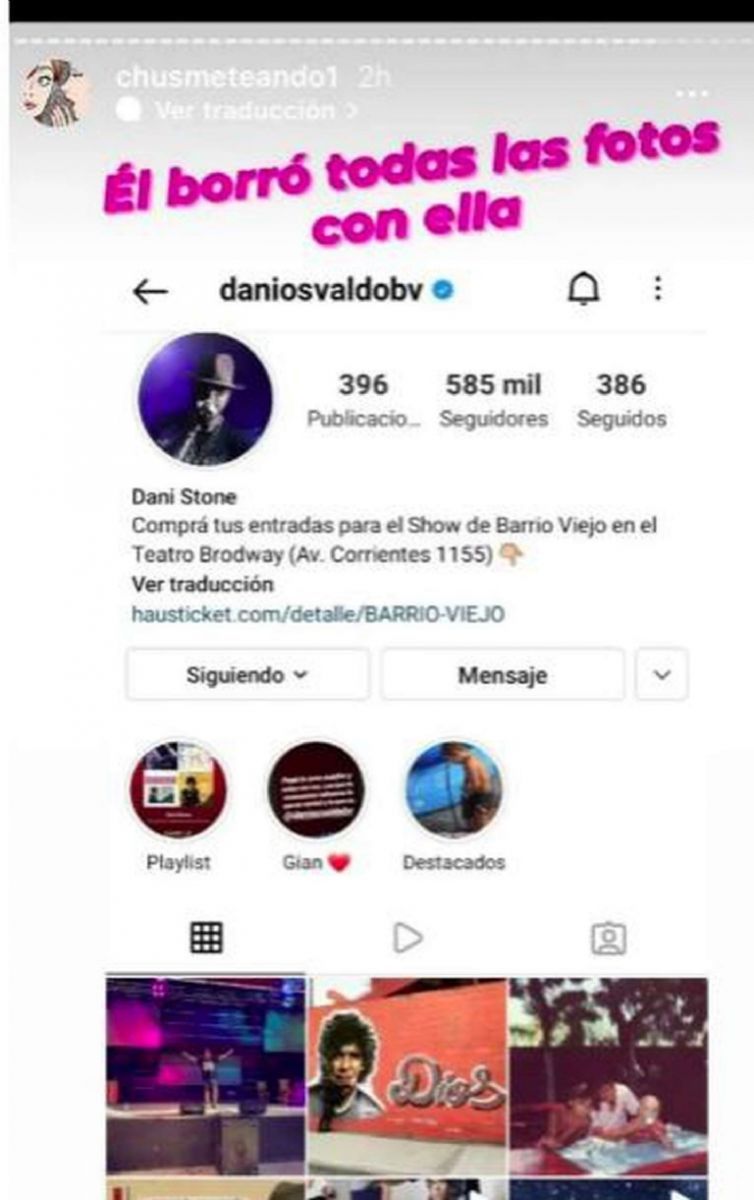 La cuenta @Chusmeteando1 fue la encargada de mostrar todos los extraños sucesos que vivieron el fin de semana y que quedaron registrados gracias a las redes sociales. Daniel borró las últimas fotos que subió con Gianinna y por su parte ella cerró directamente su cuenta.