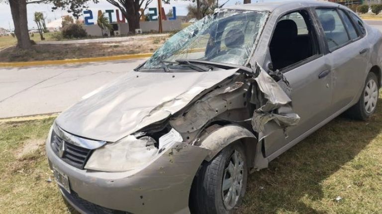 La mala maniobra hizo que chocara contra otro auto que iba en la misma dirección, de marca Fiat, subió al triángulo que divide la avenida, dio un tumbo y quedó sobre el pasto.