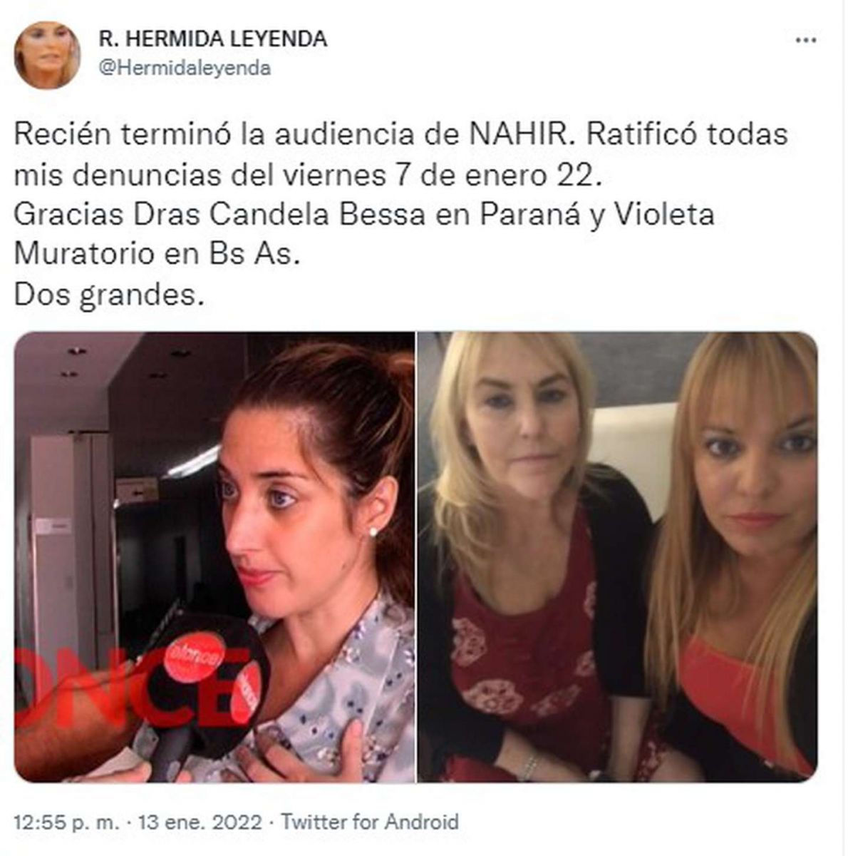 Cabe remarcar que Nahir estuvo acompañada por su abogada Raquel Hermida Leyenda y por Candela Bessa, asesora jurídica en la denuncia por abuso sexual.