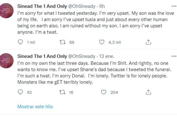 En compañía de la policía y según sus propias palabras, Sinéad acudió al hospital para ser tratada: “Lo siento. No debí haber dicho eso. Ahora estoy con la policía de camino al hospital. Lo siento, molesté a todos. Estoy perdida sin mi hijo y me odio a mí misma. El Hospital ayudará un tiempo. Pero voy a encontrar a Shane. Esto es solo un retraso”, advirtió en su cuenta.