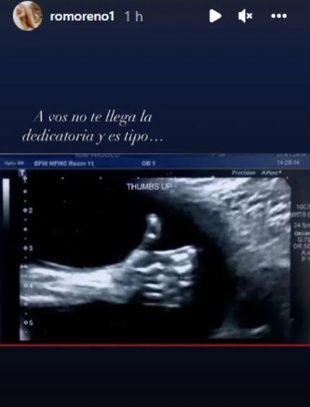 Ante esto, Rocío reaccionó irónica y publicó en sus redes sociales una ecografía en la que se ve a una mano levantando un pulgar, una especie de “está todo bien”. Y una leyenda que confirma su sentimiento: “A vos no te llega la dedicatoria y es tipo...”, dando a entender que Londra no le dedicaría ni a ella ni a su bebé por venir su regreso a la música.