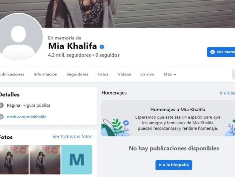 El nombre de la exactriz de contenido erótico, Mia Khalifa, fue tendencia en redes sociales luego de que su perfil de Facebook fue configurado como una cuenta conmemorativa.