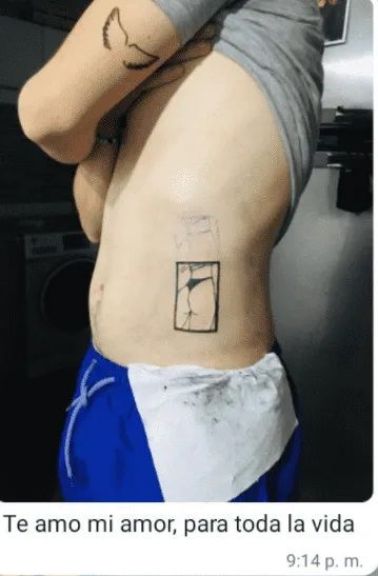 La forma de comunicarlo fue la siguiente, una foto en seco del resultado con la inscripción de “te amo mi amor, para toda la vida”. La conversación fue difundida en la red social del pajarito por la misma novia, que acompañó la imagen con un “¡La verdad que ya gané con este hombre!, se acaba de tatuar una foto de mi culo”.
