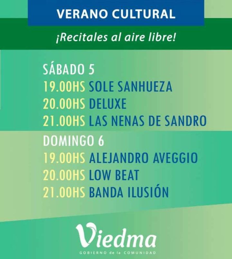 El domingo, en tanto, será el turno de Alejandro Aveggio, Low Beat y el cierre con Banda Ilusión, un grupo que realiza cuarteto comercial.