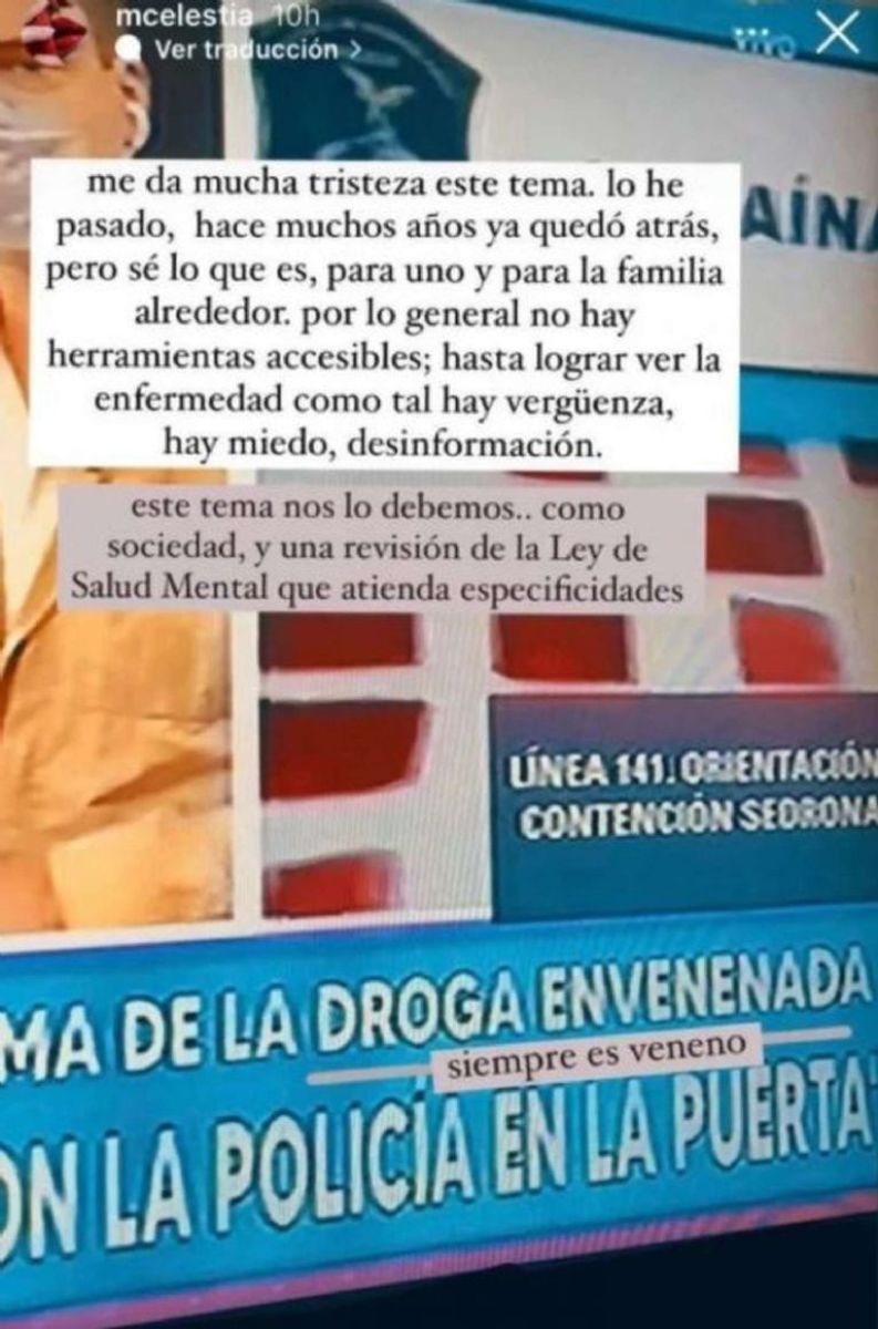 “Me da mucha tristeza este tema. Lo he pasado, hace muchos años ya quedó atrás, pero sé lo que es para uno y para la familia alrededor”, comenzó la artista. En su caso, en 2009 había estado internada en una comunidad terapéutica junto a quien por entonces era su novio, Joaquín Levinton.