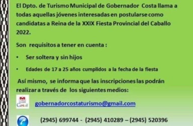 Días atrás se lanzó su convocatoria por las redes sociales y desde el Departamento de Turismo municipal pusieron como condición para postularse como candidata a la Reina del festival que tenga entre 17 y 25 años, sea soltera y no cuente con hijos.