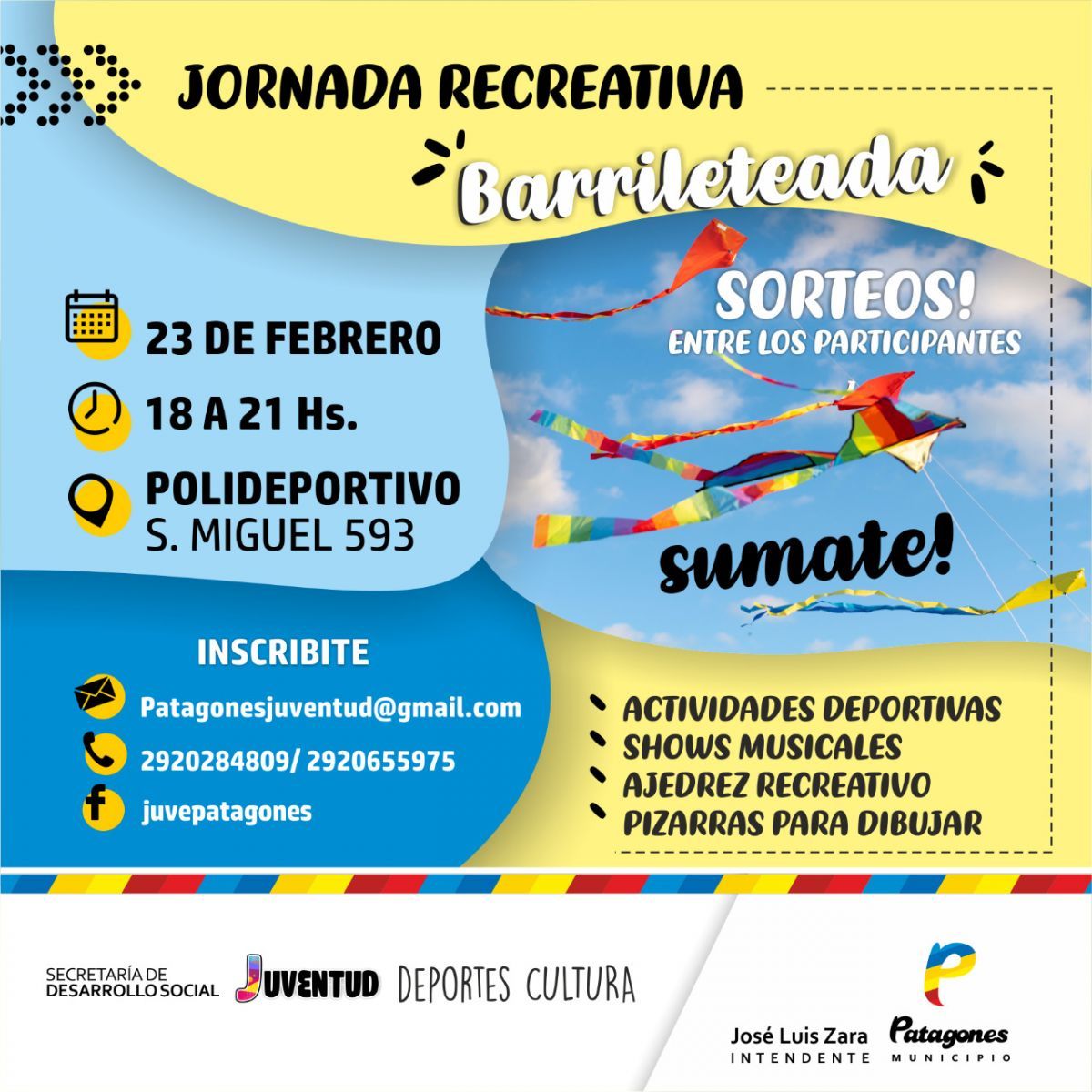 Los interesados a cualquiera de estas actividades pueden comunicarse al 2920284809, al correo [email protected] o vía Facebook "Juve Patagones".