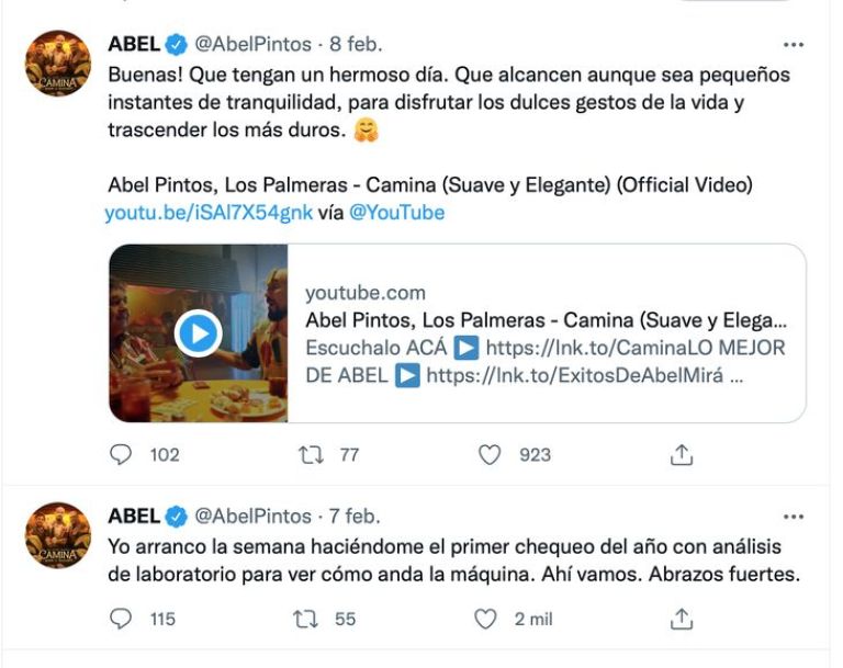 Todo comenzó con la publicación que hizo sobre su salud y que generó la reacción de sus seguidores en Twitter. “Yo arranco la semana haciéndome el primer chequeo del año con análisis de laboratorio para ver cómo anda la máquina. Ahí vamos. Abrazos fuertes”, escribió.