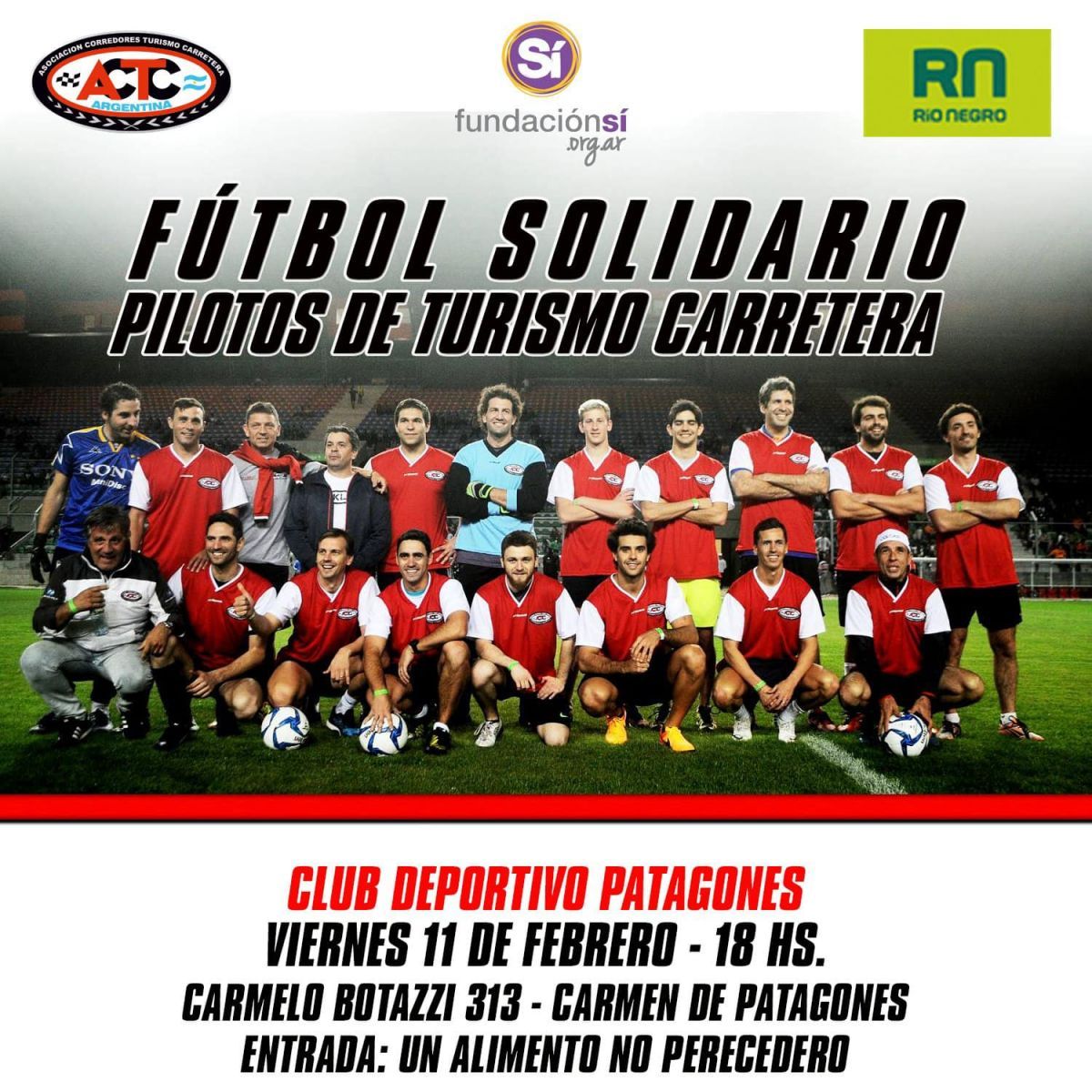 Este viernes, desde las 18, los pilotos del Turismo Carretera dejarán de lado los trajes antiflama y se calzarán los botines para salir a la cancha en un partido para colaborar con los merenderos de Viedma y Carmen de Patagones.