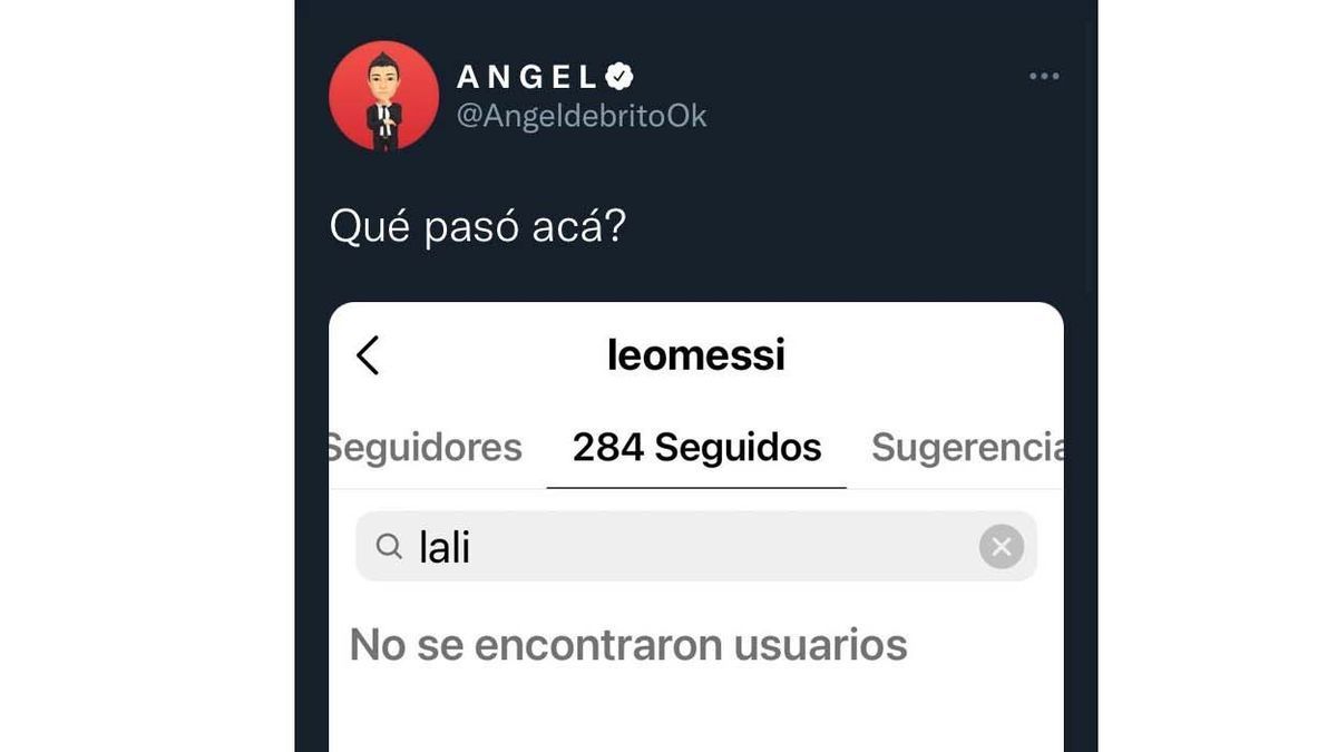Sin embargo, parece ser que la historia no le causó gracia al futbolista que ahora dejó de seguirla en la red. Así lo dejó asentado en su perfil Ángel de Brito al compartir una captura como prueba y consultar: “¿Qué pasó acá?”.