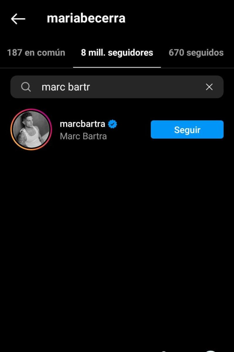 Gracias a algunos movimientos que se observaron en su cuenta de Instagram, comenzaron los rumores de romance entre María Becerra y Marc Bartra, jugador del Real Betis de España. Lo cierto es que ambos se siguen y llevan tiempo dando like a cada publicación que surge de cada uno.