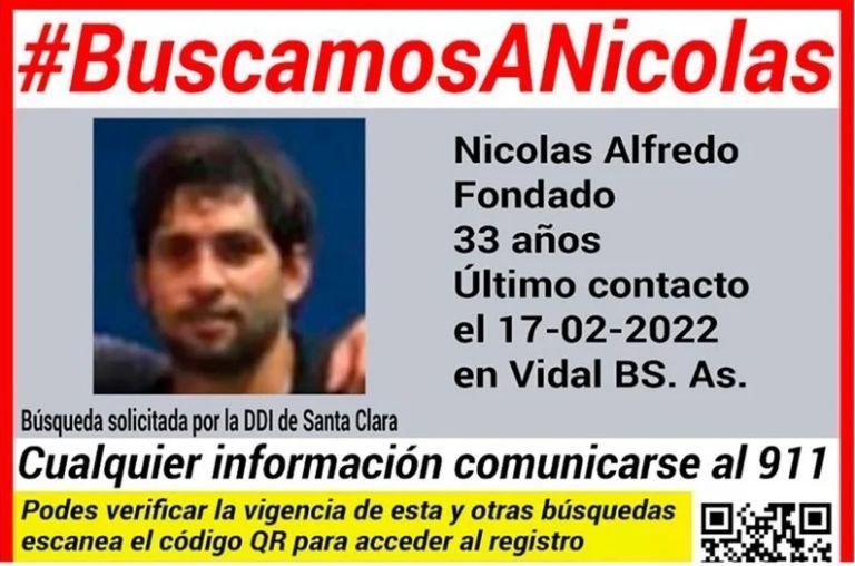 Fondado era intensamente buscado por la Policía desde el 17 de febrero, momento en el que su familia realizó la denuncia. El día anterior, el hombre había perdido el contacto con sus allegados en la localidad de Coronel Vidal, en el partido bonaerense de Mar Chiquita.