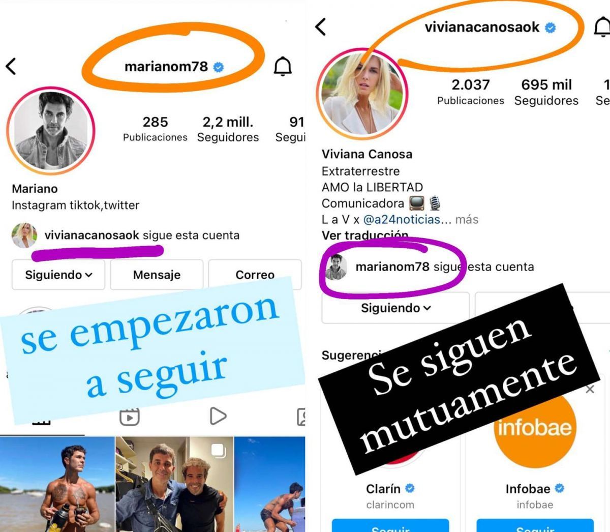 De este modo, las pruebas que mostró Juariu están al alcance de cualquier usuario de esa red social. Para empezar, Viviana Canosa y Mariano Martínez se siguen mutuamente en Instagram.