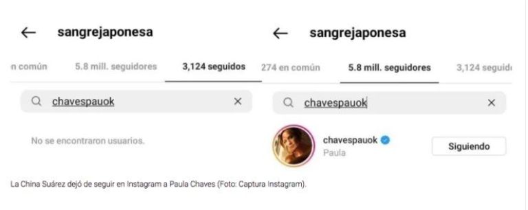 Inmediatamente después del posteo, la China dejó de seguir a Paula Chaves.