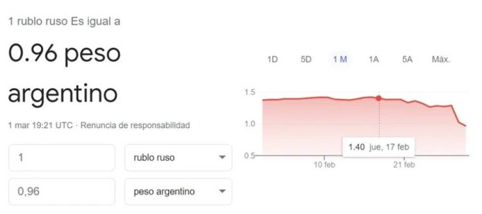 Increíble: cayó la moneda rusa y ahora vale menos que 1 peso argentino