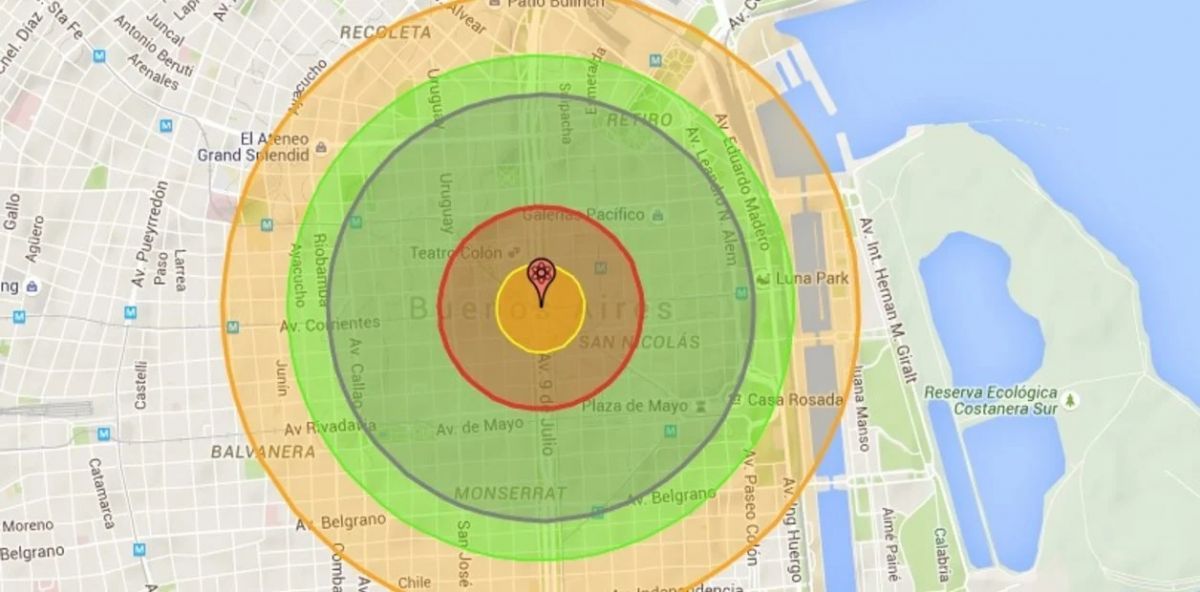Con Science Alert también se pudo medir el impacto de lo que sería una bomba nuclear en los principales centros del mundo, por caso Buenos Aires, Londres, Madrid y Nueva York.