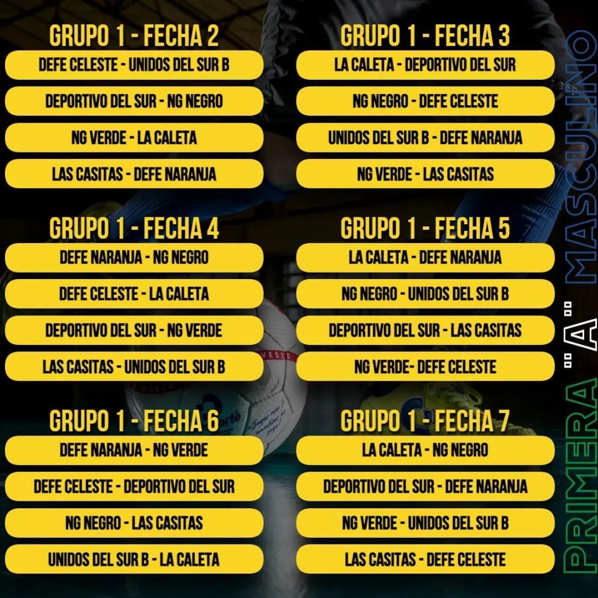 La zona 1 estará integrada por: Defensores Naranja, Defensores Celeste, La Caleta, Las Casitas, Nueva Generación Verde, Nueva Generación Negro, Unidos del Sur B y Deportivo del Sur.