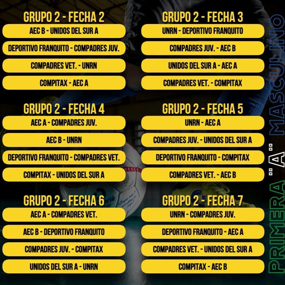 La zona 2 tendrá los siguientes protagonistas: Asociación Empleados de Comercio A, Asociación Empleados de Comercio B, Universidad Nacional de Río Negro, Compitax, Compadres juveniles, Compadres veteranos, Unidos del Sur A y Deportivo Franquito.