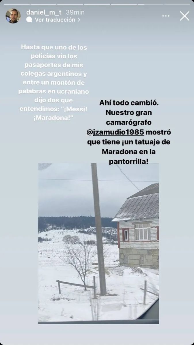 "Hasta que uno de los policías vio los pasaportes de mis colegas argentinos y entre un montón de palabras en ucraniano, dijo dos que entendimos ‘Messi’ y ‘Maradona‘. Ahí todo cambió. Nuestro gran camarógrafo mostró que tiene un tatuaje de Diego Maradona en la pantorrilla", relató el periodista chileno.