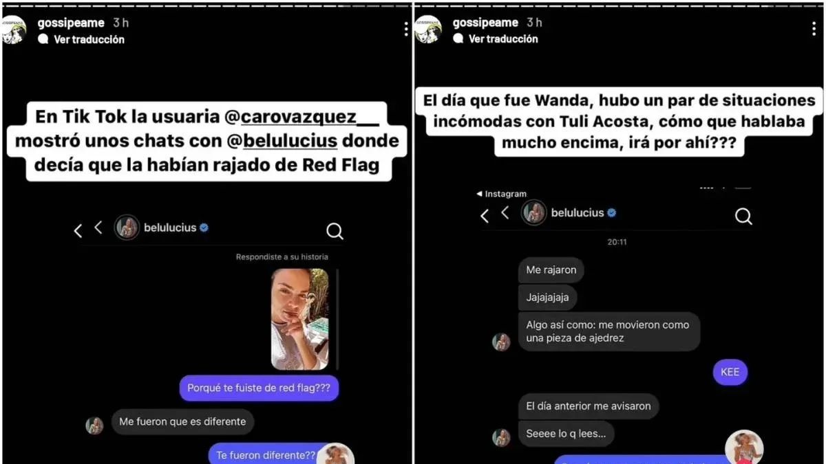 “¿Por qué te fuiste de Red Flag?”, le consultó la usuaria, a lo que la famosa respondió: “Me fueron, que es diferente”. Ante el asombro de la seguidora que repreguntó sobre el tema, Lucius agregó: “Me rajaron. Algo así como me movieron como una pieza de ajedrez. Sí, lo que leés. El día anterior me avisaron”. La cuenta Gossipeame de Instagram reveló estos chats, que previamente fueron publicados por la propia seguidora en Tik Tok.