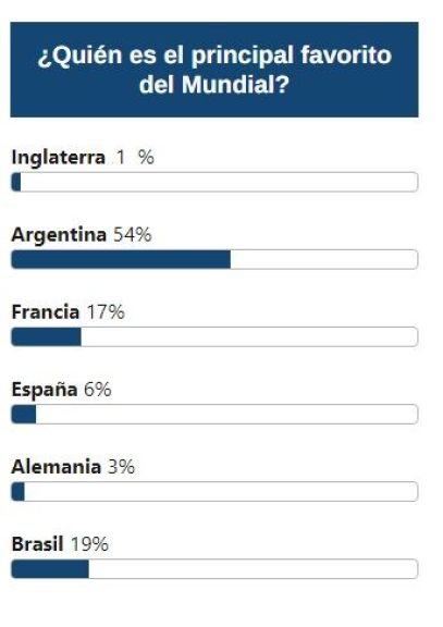 El soberano opinó que hay un 54% de chances de que Argentina se alce con el trofeo más codiciado en el mundo. Obviamente, muchos votaron con la camiseta puesta, con mucha subjetividad.