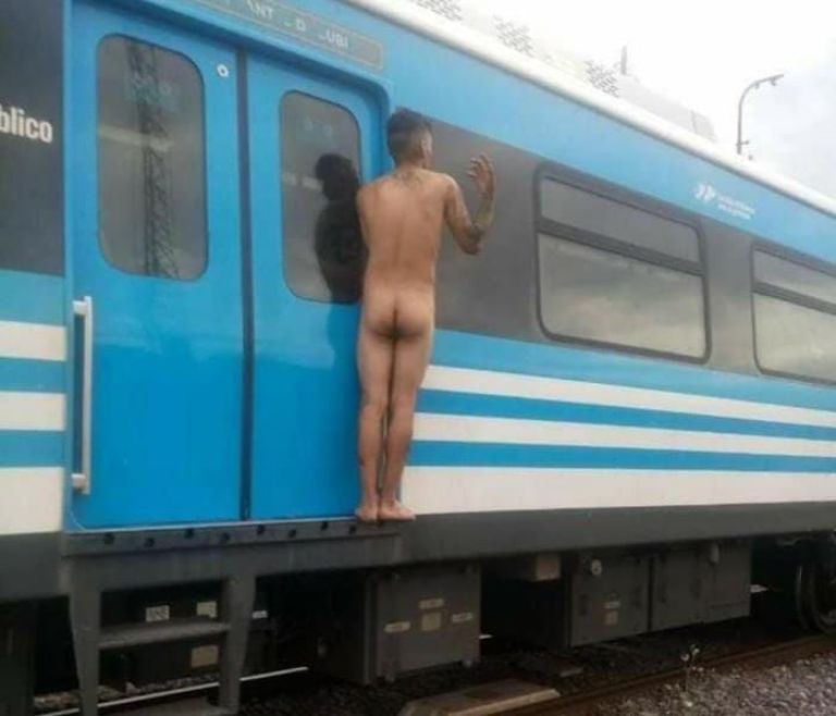El jueves por la mañana ocurrió un hecho insólito: un joven desnudo intentó viajar colgado del tren Sarmiento. Sucedió en la estación terminal de Plaza Miserere, en el barrio porteño de Once, y las imágenes se viralizaron rápidamente.