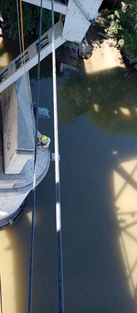 Las principales tareas fueron sobre la iluminación. Las luminarias de la parte superior se cambiaron con grúas y para hacer lo propio en la parte inferior, cercana al río, los operarios debieron bajar con un arnés. También se acondicionaron algunos sectores de las planchas del piso.