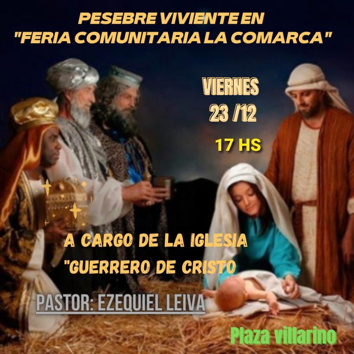 Según informaron desde la organización, el pesebre viviente se llevará a cabo alrededor de las 17 y estará a cargo de la iglesia Guerrero de Cristo, contando con la presencia del pastor Ezequiel Leiva.