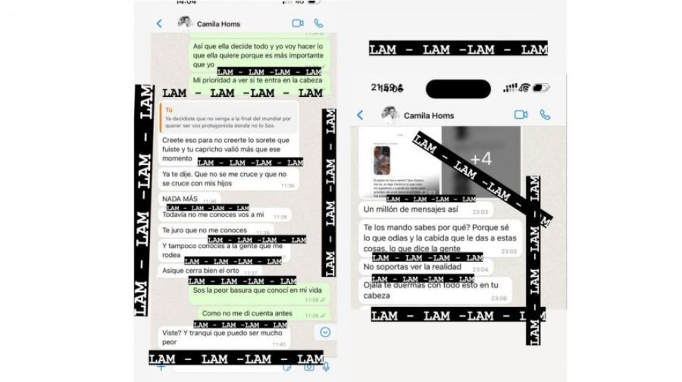 "¿Así que ella decide todo y yo voy a hacer lo que ella quiere? Mi prioridad son los chicos a ver si te entra en la cabeza", fue uno de los mensajes de Homs a de Paul. A medida que el conductor de LAM fue transmitiendo dichos mensajes, los cuales se encuentran en el expediente de la causa, la gravedad de los actos fueron subiendo.