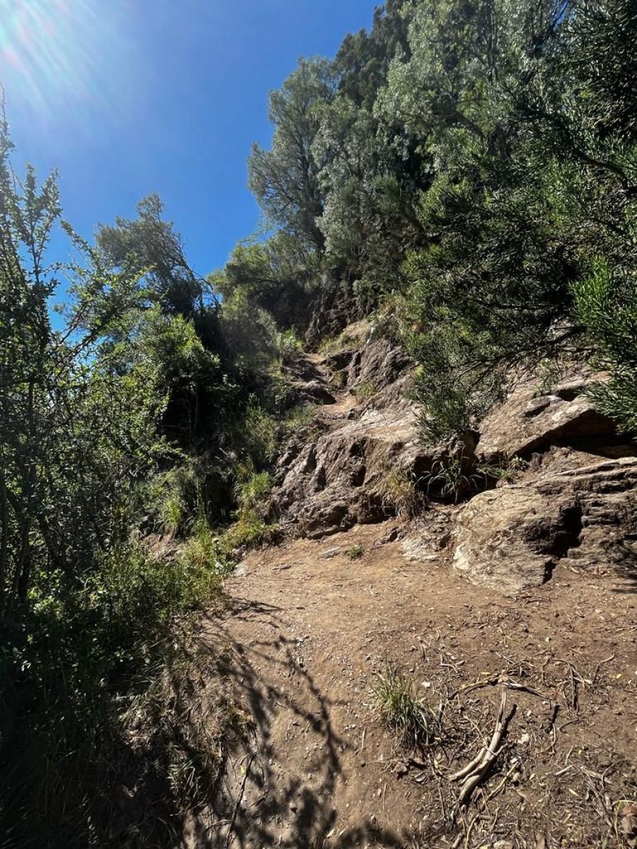 Por un costado inicia un camino que lleva a la parte superior. Son dos tenues rutas, en verdad. Una que se mete en el bosque nativo y otra que pasa justo por el borde de la roca junto al vacío.