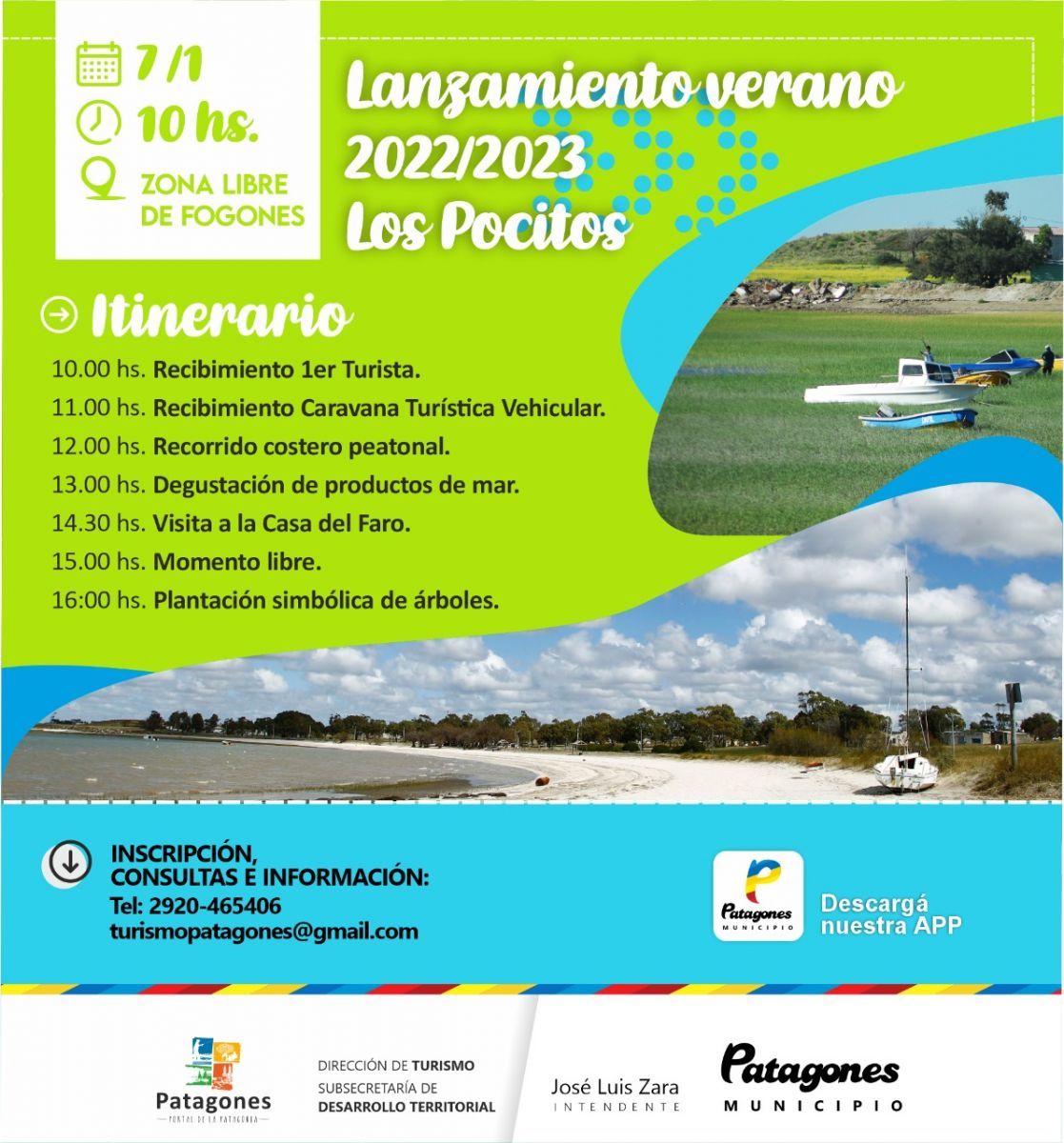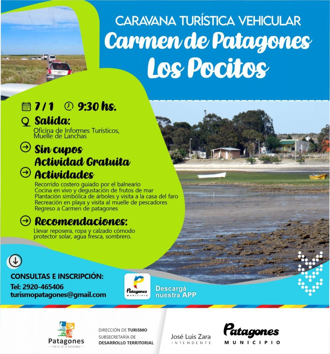 En tanto, el cronograma de alternativas para la temporada estival del municipio maragato también tendrá este sábado 7 una caravana turística vehicular gratuita para unir Patagones y Los Pocitos. El cupo será ilimitado y será un recorrido guiado, con cocina en vivo, degustación de frutos de mar, plantación simbólica de árboles y visita a la casa del faro. También habrá recreación en la playa y un paso por el muelle de pescadores.