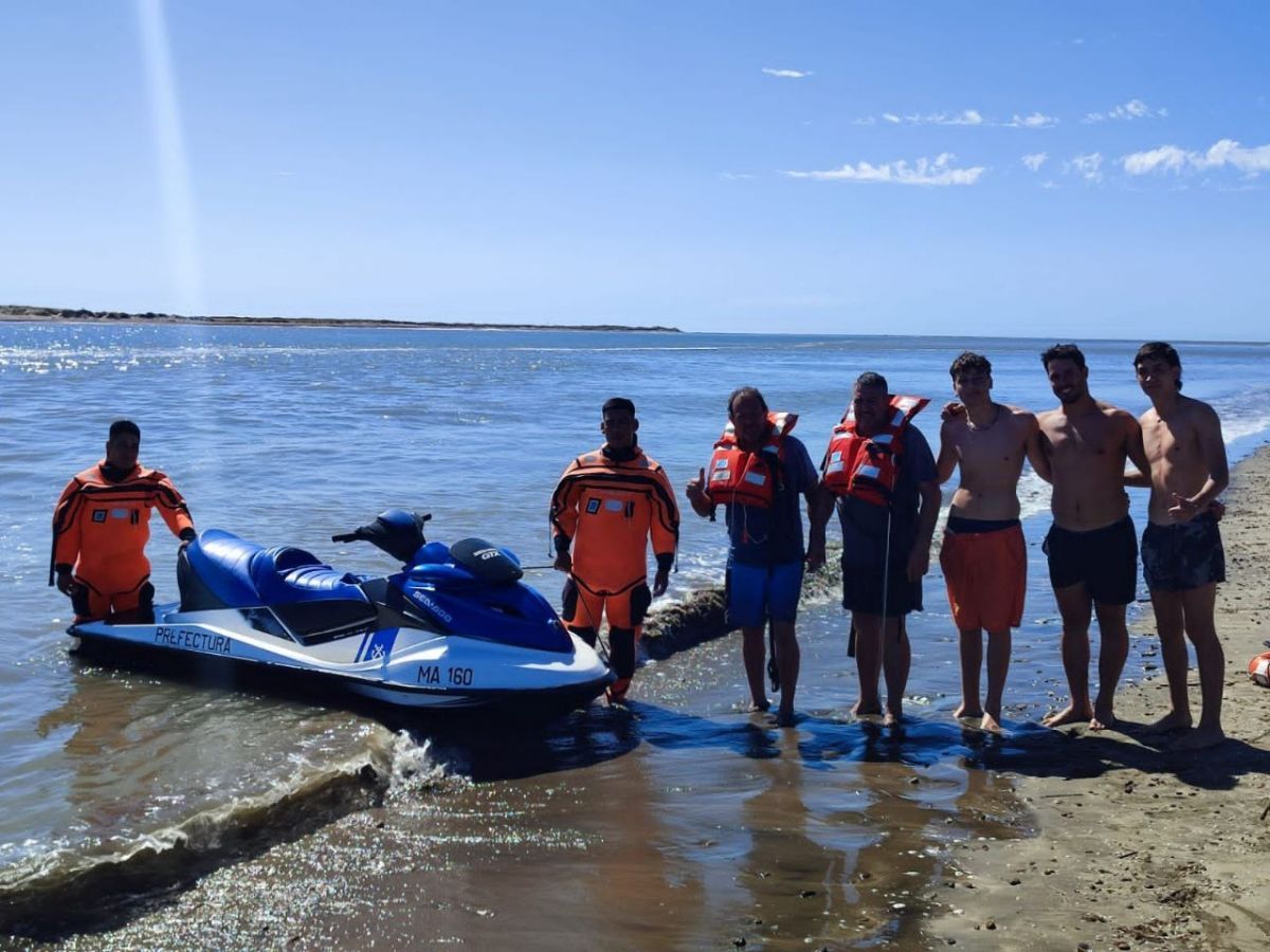 Al lugar, muy cerca de la desembocadura, se dirigió personal de la Prefectura Naval a bordo de una motonáutica para asistir a los jóvenes y devolverlos a tierra firme.