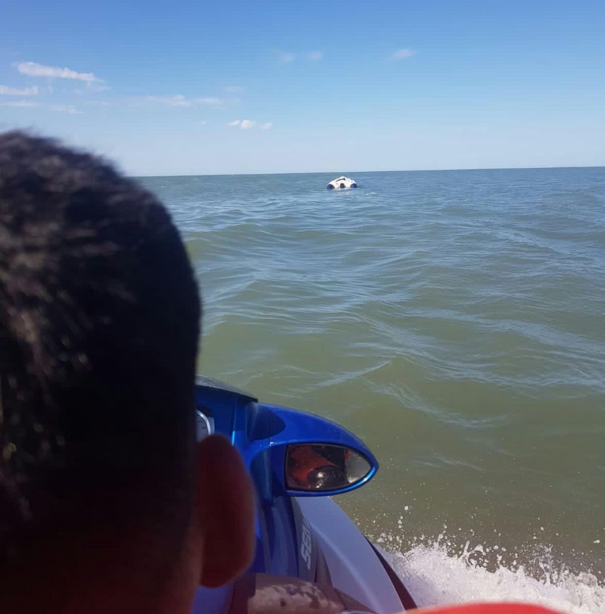 Una situación de extremo riesgo se vivió en la jornada de este jueves en el balneario El Cóndor cuando personas jóvenes quienes navegaban a bordo  de un semirrígido se dieron vuelta y quedaron a merced del agua.